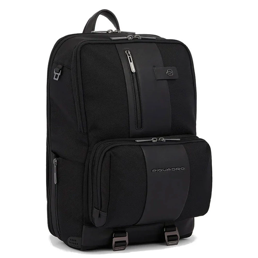 Zaino per computer da 15.6" in pelle e tessuto, materiale riciclato Piquadro. PRODOTTO OTTENUTO DA MATERIALI RICICLATI/RIGENERATI. CARATTERISTICHE: Zaino da lavoro e tempo libero unisex con compartimento per notebook 15.6", sistema di aggancio al trolley a tasca posteriore, portapenne interno, porta bottiglia ripiegabile, tasca porta ombrello, PORTA IPAD®AIR-IPAD PRO 9.7/IPAD 11", tasca per AirPods, sistema antifurto - Scomparti: 2 - Dimensioni: 30,00 x 45,00 x 18,00 (cm). COLLEZIONE: BRIEF 2 è una linea amica dell'ambiente perchè realizzata in una fibra di nylon di alta qualità fatta con filati riciclati utilizzando l'eco-tecnologia del processo di riciclo.